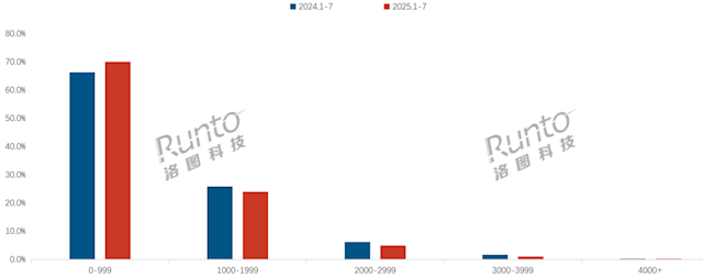 2025年1-7月,该价位段的销量占比已达到70.1%,相比去年同期扩大了3.8个百分点。